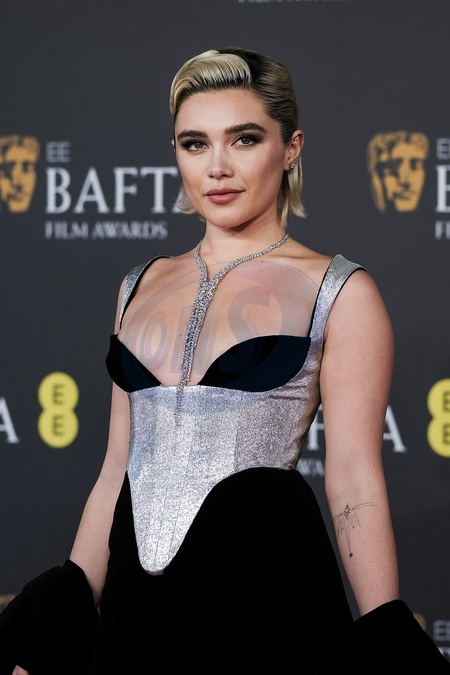 Florence Pugh arriving at the 2024 EE BAFTA Film Awards on Sunday 18 February 2024 at Royal Festival Hall, London. ., Credit:Julie Edwards. / Avalon