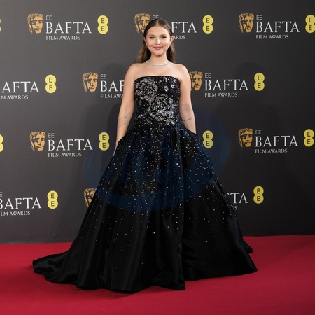 Mia Mckenna-Bruce arriving at the 2024 EE BAFTA Film Awards on Sunday 18 February 2024 at Royal Festival Hall, London. ., Credit:Julie Edwards / Avalon