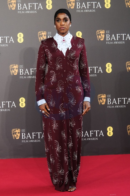 Lashana Lynch arriving at the 2024 EE BAFTA Film Awards on Sunday 18 February 2024 at Royal Festival Hall, London. ., Credit:Julie Edwards / Avalon