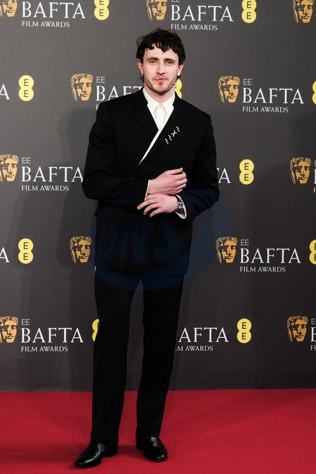 Paul Mescal arriving at the 2024 EE BAFTA Film Awards on Sunday 18 February 2024 at Royal Festival Hall, London. ., Credit:Julie Edwards / Avalon