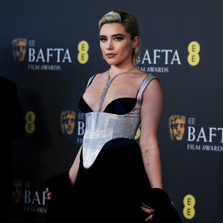 Florence Pugh arriving at the 2024 EE BAFTA Film Awards on Sunday 18 February 2024 at Royal Festival Hall, London. ., Credit:Julie Edwards / Avalon