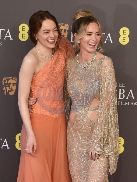 Emma Stone and Emily Blunt attends the 2024 EE BAFTA Film Awards at the Royal Festival Hall in London, England. UK. Sunday 18th February 2024 -, Credit:James Warren / Avalon
