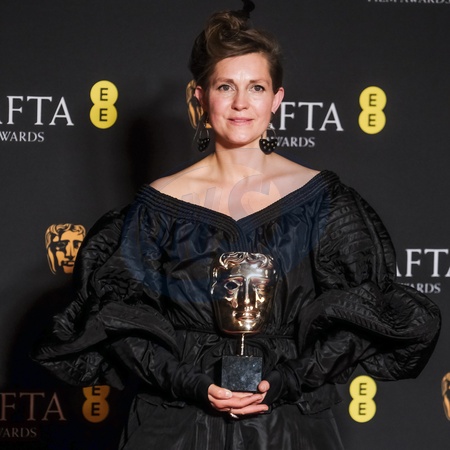Holly Waddington poses backstage at the 2024 EE BAFTA Film Awards on Sunday 18 February 2024 at Royal Festival Hall, London. Pictured backstage Bafta Fellowship., Credit:Julie Edwards / Avalon