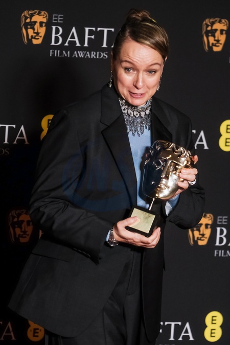 Samantha Morton poses backstage at the 2024 EE BAFTA Film Awards on Sunday 18 February 2024 at Royal Festival Hall, London. Pictured backstage Bafta Fellowship., Credit:Julie Edwards / Avalon
