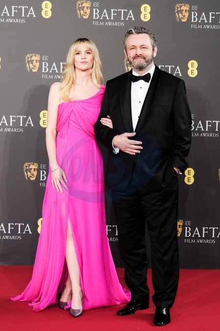 Anna Lundberg and Michael Sheen arriving at the 2024 EE BAFTA Film Awards on Sunday 18 February 2024 at Royal Festival Hall, London. ., Credit:Julie Edwards / Avalon