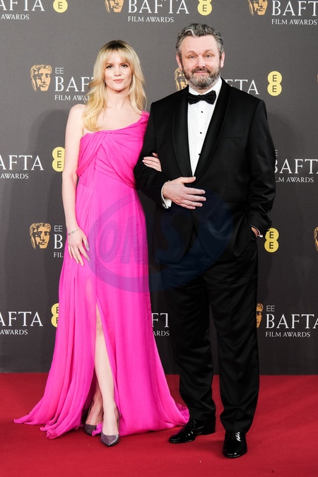 Anna Lundberg and Michael Sheen arriving at the 2024 EE BAFTA Film Awards on Sunday 18 February 2024 at Royal Festival Hall, London. ., Credit:Julie Edwards / Avalon