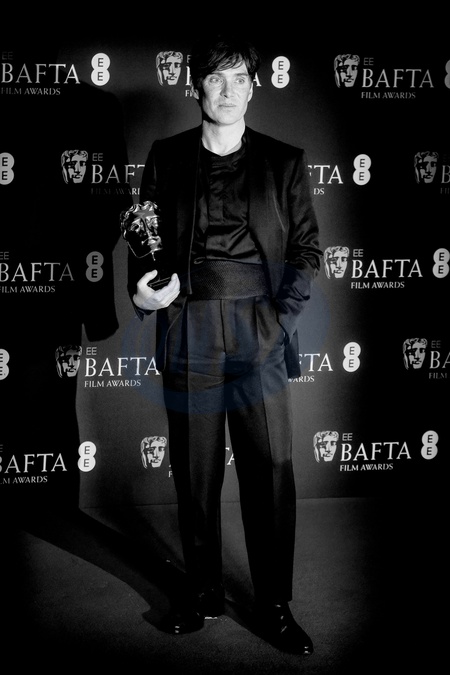 Cillian Murphy poses backstage at the 2024 EE BAFTA Film Awards on Sunday 18 February 2024 at Royal Festival Hall, London. Pictured backstage with the BAFTA award for Leading Actor., Credit:Julie Edwards / Avalon