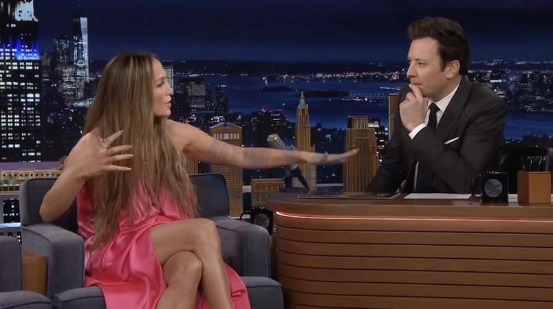 Jennifer Lopez w studiu NBC podczas występu w programie „The Tonight Show Starring Jimmy Fallon” w Nowym Jorku