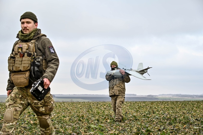 UKRAINE - FEBRUARY 15, 2024 - Servicemen of an aerial reconnaissance platoon of the 108th Independent Brigade of the Ukrainian Territorial Defence Forces which defends Ukraine against the Russian aggressor on the Zaporizhzhia axis, work with a Leleka-100 UAV, Ukraine., Credit:Dmytro Smolienko / Avalon