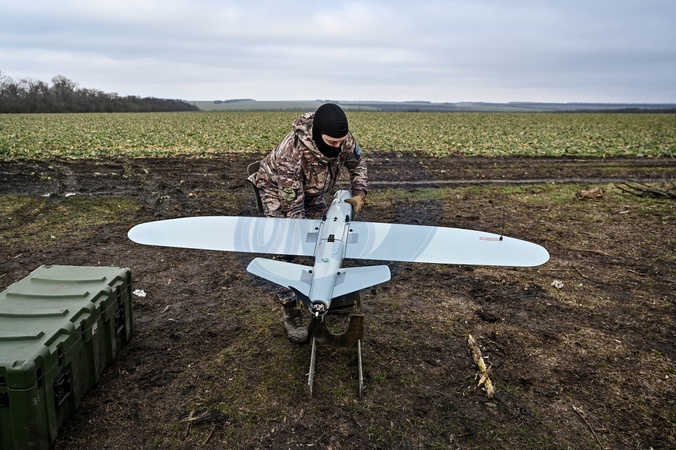 UKRAINE - FEBRUARY 15, 2024 - A serviceman of an aerial reconnaissance platoon of the 108th Independent Brigade of the Ukrainian Territorial Defence Forces which defends Ukraine against the Russian aggressor on the Zaporizhzhia axis, gets a Leleka-100 UAV ready for the launch, Ukraine., Credit:Dmytro Smolienko / Avalon