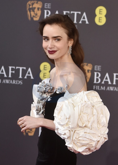 Lily Collins attends the 2024 EE BAFTA Film Awards at the Royal Festival Hall in London, England. UK. Sunday 18th February 2024 -, Credit:James Warren / Avalon