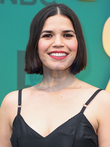 SANTA MONICA, LOS ANGELES, CALIFORNIA, USA - FEBRUARY 18: America Ferrera arrives at the 49th Annual People's Choice Awards 2024 held at The Barker Hangar on February 18, 2024 in Santa Monica, Los Angeles, California, United States., Credit:Xavier Collin / Avalon