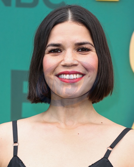 SANTA MONICA, LOS ANGELES, CALIFORNIA, USA - FEBRUARY 18: America Ferrera arrives at the 49th Annual People's Choice Awards 2024 held at The Barker Hangar on February 18, 2024 in Santa Monica, Los Angeles, California, United States., Credit:Xavier Collin / Avalon