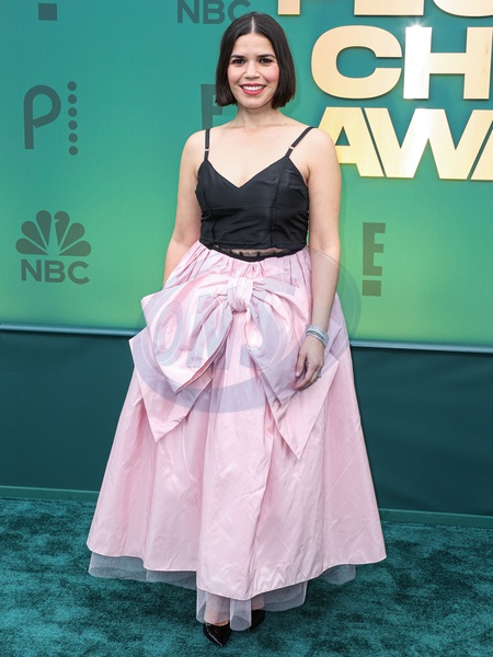 SANTA MONICA, LOS ANGELES, CALIFORNIA, USA - FEBRUARY 18: America Ferrera arrives at the 49th Annual People's Choice Awards 2024 held at The Barker Hangar on February 18, 2024 in Santa Monica, Los Angeles, California, United States., Credit:Xavier Collin / Avalon