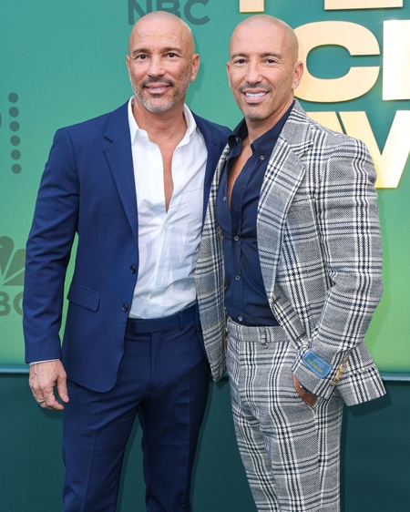 SANTA MONICA, LOS ANGELES, CALIFORNIA, USA - FEBRUARY 18: Brett Oppenheim and brother Jason Oppenheim arrive at the 49th Annual People's Choice Awards 2024 held at The Barker Hangar on February 18, 2024 in Santa Monica, Los Angeles, California, United States., Credit:Xavier Collin / Avalon