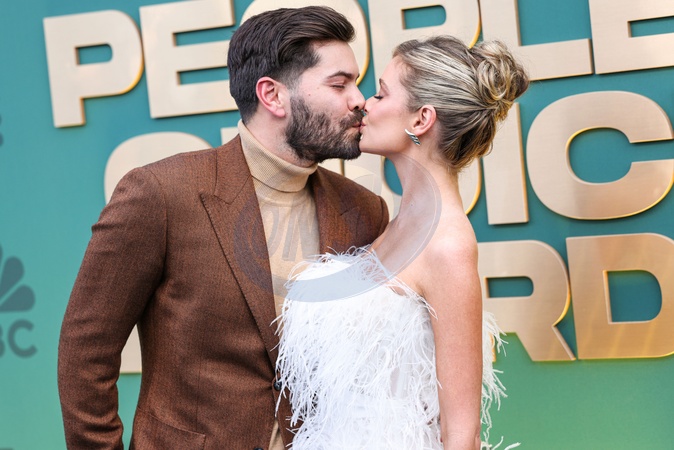 SANTA MONICA, LOS ANGELES, CALIFORNIA, USA - FEBRUARY 18: Dylan Barbour and wife Hannah Godwin arrive at the 49th Annual People's Choice Awards 2024 held at The Barker Hangar on February 18, 2024 in Santa Monica, Los Angeles, California, United States., Credit:Xavier Collin / Avalon