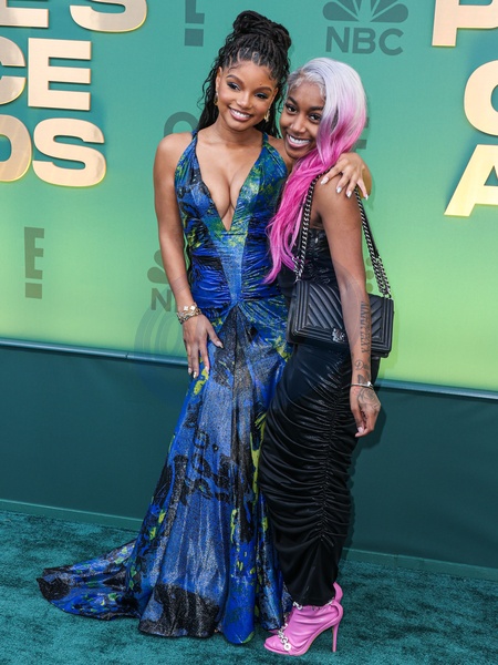 SANTA MONICA, LOS ANGELES, CALIFORNIA, USA - FEBRUARY 18: Halle Bailey and Tee Tee arrive at the 49th Annual People's Choice Awards 2024 held at The Barker Hangar on February 18, 2024 in Santa Monica, Los Angeles, California, United States., Credit:Xavier Collin / Avalon