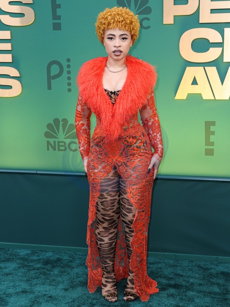 SANTA MONICA, LOS ANGELES, CALIFORNIA, USA - FEBRUARY 18: Ice Spice wearing custom Dolce and Gabbana and Levian jewels arrives at the 49th Annual People's Choice Awards 2024 held at The Barker Hangar on February 18, 2024 in Santa Monica, Los Angeles, California, United States., Credit:Xavier Collin / Avalon