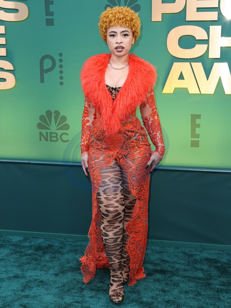 SANTA MONICA, LOS ANGELES, CALIFORNIA, USA - FEBRUARY 18: Ice Spice wearing custom Dolce and Gabbana and Levian jewels arrives at the 49th Annual People's Choice Awards 2024 held at The Barker Hangar on February 18, 2024 in Santa Monica, Los Angeles, California, United States., Credit:Xavier Collin / Avalon