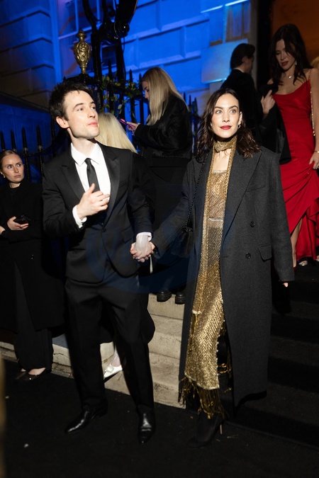 Alexa Chung et son compagnon Tom Sturridge à la sortie de la soirée British Vogue et Tiffany & Co. "Celebrate Fashion and Film Party 2024" chez Annabel en marge des BAFTA 2024 à Londres, Royaume Uni, le 18 février 2024. Alexa Chung and Tom Sturridge are seen leaving the British Vogue And Tiffany & Co. "Celebrate Fashion And Film Party 2024" at Annabel's in London, UK, on February 18, 2024.