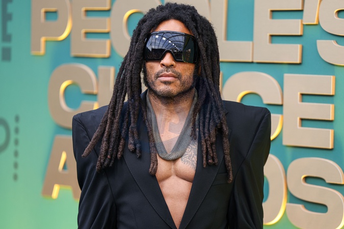 SANTA MONICA, LOS ANGELES, CALIFORNIA, USA - FEBRUARY 18: Lenny Kravitz wearing a Balenciaga blazer, Chrome Hearts jewelry, and Rick Owens glasses arrives at the 49th Annual People's Choice Awards 2024 held at The Barker Hangar on February 18, 2024 in Santa Monica, Los Angeles, California, United States., Credit:Xavier Collin / Avalon