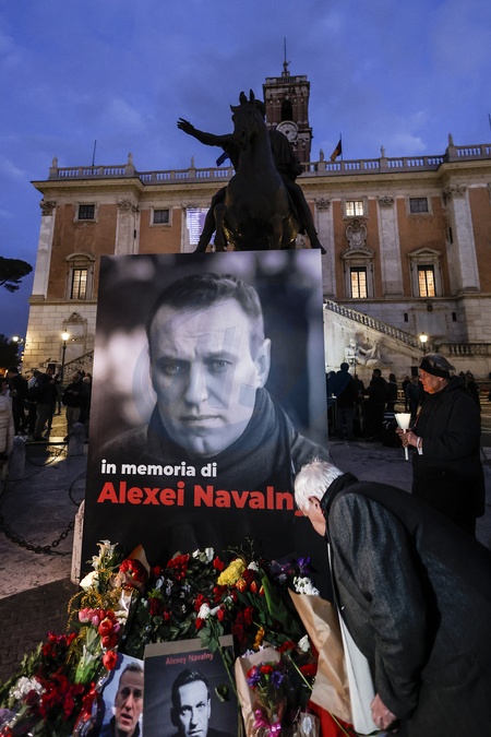 Procesja z pochodniami ku pamięci przywódcy rosyjskiej opozycji Aleksieja Nawalnego w Rzymie, Włochy – 19 lutego 2024 r.