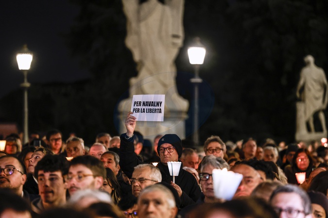 torchlight procession in memory of Russian opposition leader Alexei Navalny, who died on 16 February in a Arctic penal colony, the Federal Penitentiary Service of the Yamalo-Nenets Autonomous District, in Capitol Square, Rome, Italy, 19 February 2024., Credit:Riccardo De Luca / Avalon