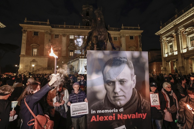 Procesja z pochodniami ku pamięci przywódcy rosyjskiej opozycji Aleksieja Nawalnego w Rzymie, Włochy – 19 lutego 2024 r.