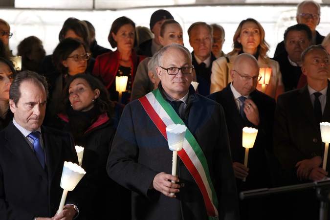 Roberto Gualtieri during the torchlight procession in memory of Russian opposition leader Alexei Navalny, who died on 16 February in a Arctic penal colony, the Federal Penitentiary Service of the Yamalo-Nenets Autonomous District, in Capitol Square, Rome, Italy, 19 February 2024., Credit:Riccardo De Luca / Avalon