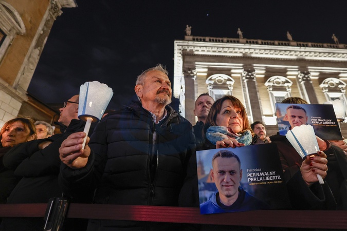Procesja z pochodniami ku pamięci przywódcy rosyjskiej opozycji Aleksieja Nawalnego w Rzymie, Włochy – 19 lutego 2024 r.