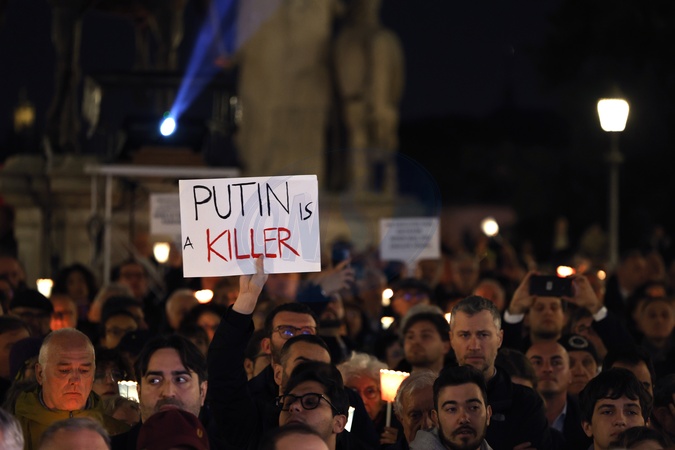 Procesja z pochodniami ku pamięci przywódcy rosyjskiej opozycji Aleksieja Nawalnego w Rzymie, Włochy – 19 lutego 2024 r.