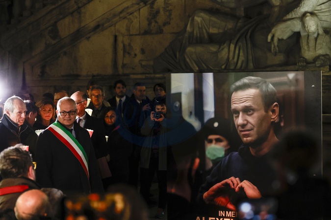 Roberto Gualtieri during the torchlight procession in memory of Russian opposition leader Alexei Navalny, who died on 16 February in a Arctic penal colony, the Federal Penitentiary Service of the Yamalo-Nenets Autonomous District, in Capitol Square, Rome, Italy, 19 February 2024., Credit:Riccardo De Luca / Avalon