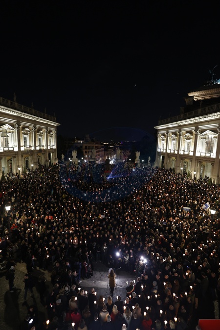 torchlight procession in memory of Russian opposition leader Alexei Navalny, who died on 16 February in a Arctic penal colony, the Federal Penitentiary Service of the Yamalo-Nenets Autonomous District, in Capitol Square, Rome, Italy, 19 February 2024., Credit:Riccardo De Luca / Avalon