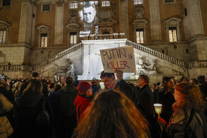 Procesja z pochodniami ku pamięci przywódcy rosyjskiej opozycji Aleksieja Nawalnego w Rzymie, Włochy – 19 lutego 2024 r.