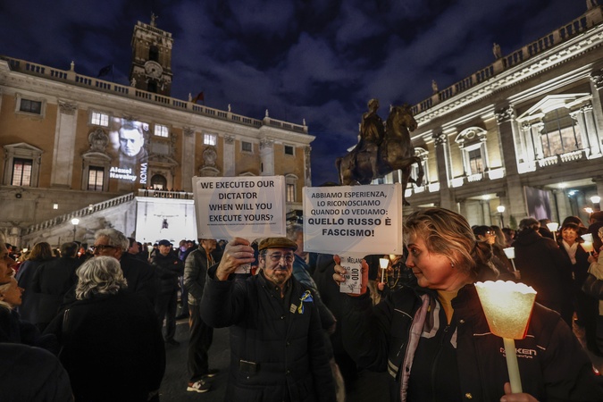 Procesja z pochodniami ku pamięci przywódcy rosyjskiej opozycji Aleksieja Nawalnego w Rzymie, Włochy – 19 lutego 2024 r.