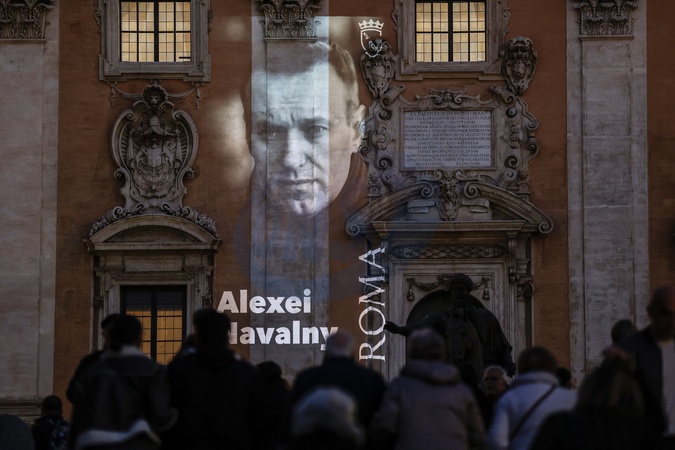 Procesja z pochodniami ku pamięci przywódcy rosyjskiej opozycji Aleksieja Nawalnego w Rzymie, Włochy – 19 lutego 2024 r.