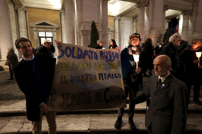 Procesja z pochodniami ku pamięci przywódcy rosyjskiej opozycji Aleksieja Nawalnego w Rzymie, Włochy – 19 lutego 2024 r.