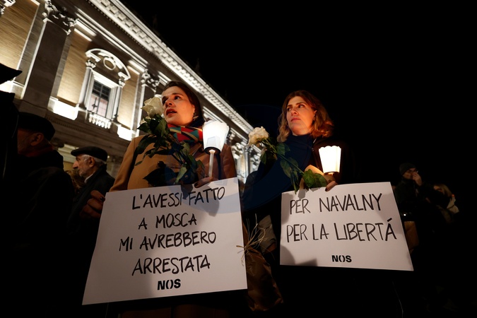 Torchlight procession in memory of Russian opposition leader Alexei Navalny in Rome, Italy - 19 Feb 2024