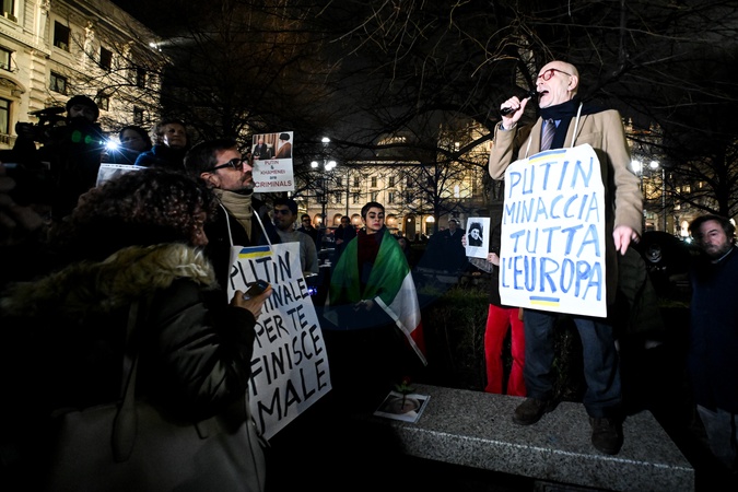 wiec ku pamięci przywódcy rosyjskiej opozycji Aleksieja Nawalnego w Mediolanie, Włochy – 19 lutego 2024 r.