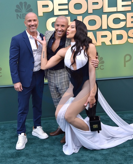 Jason Oppenheim, Brett Oppenheim and Amanza Smith arriving at the 2024 People's Choice Awards held at Barker Hanger on February 18, 2024 in Santa Monica, CA.© OConnor-Arroyo / AFF-USA.com