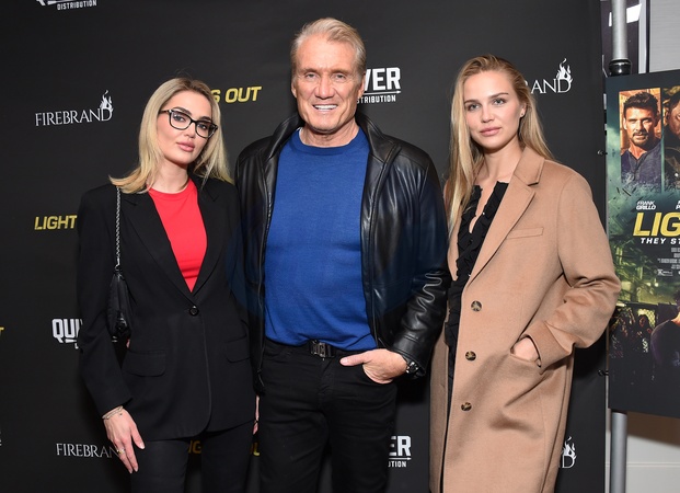 Emma Krokdal, Dolph Lundgren and Ida Lundgren arriving to ‘Lights Out' Los Angeles Premiere at Tudum Theater on February 20, 2024 in Hollywood