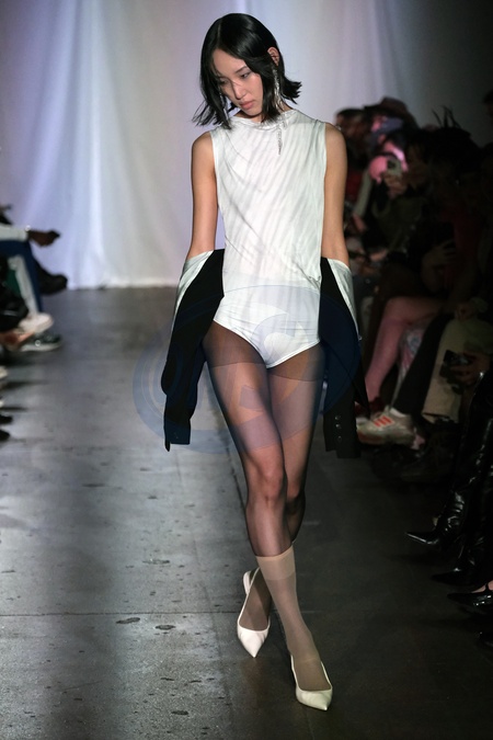 Catwalk fashion show on day three of London Fashion Week, that took place February 18th 2024. Image shows models walking in a Zombie style during the Ju-Nna show at Fashion Scout, Credit:Pat Lyttle / Avalon