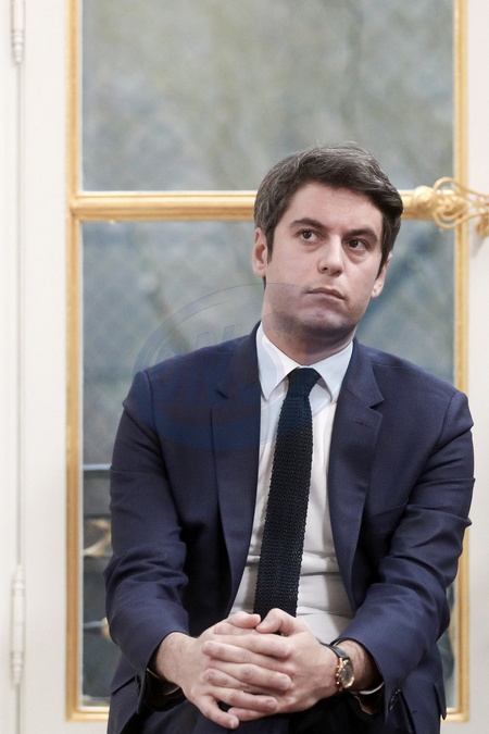 Le Premier ministre Gabriel Attal, accompagné de Bruno Le Maire et Marc Fesneau, donne une conference de presse sur la situation agricole, à l'Hôtel de Matignon à Paris