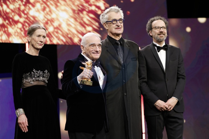 Mariette Rissenbeek, Wim Wenders, Martin Scorsese, Carlo Chatrian on stage at the Honorary Golden Bear Award Ceremony for Martin Scorsese during the 74th Berlinale International Film Festival at Berlinale Palace on February 20, 2024 in Berlin, Germany., Credit:John Rasimus / Avalon