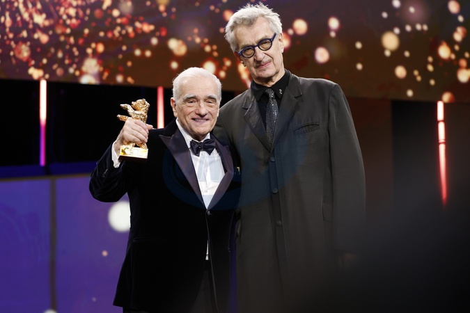 Martin Scorsese, Wim Wenders on stage at the Honorary Golden Bear Award Ceremony for Martin Scorsese during the 74th Berlinale International Film Festival at Berlinale Palace on February 20, 2024 in Berlin, Germany., Credit:John Rasimus / Avalon