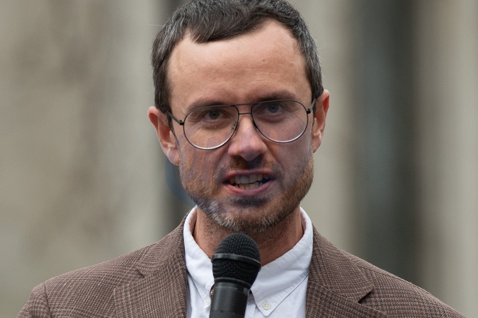 Gabriel Shipton - brother of Wikileaks Founder Julian Assange speaks at the lunch break at The Royal Courts of Justice in London, England, UK on Wednesday 21 February, 2024. Assange is awaiting a judgment for his extradition to the US., Credit:Justin Ng / Avalon