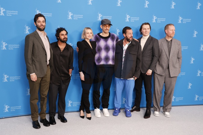 Kunal Nayyar, Carey Mulligan, Johan Renck, Adam Sandler, Paul Dano, Max Richter, Michael Parets attends the photocall for 'Spaceman' during the 74th Berlinale International Film Festival at the Hyatt Grand Hotel on February 21, 2024 in Berlin, Germany., Credit:John Rasimus / Avalon