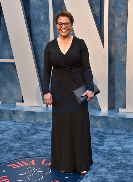 Karen Bass arriving at the Vanity Fair Oscar Party held at the Wallis Annenberg Center for the Performing Arts on March 12, 2023 in Beverly Hills, CA.© OConnor-Arroyo / AFF-USA.com