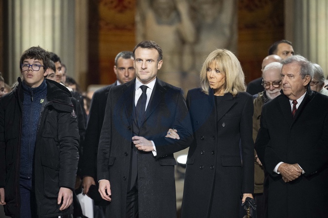 Le président Emmanuel Macron, sa femme Brigitte Macron lors de la cérémonie d'État pour l'intronisation de Missak Manouchian et de sa femme Mélinee au Panthéon à Paris le 21 février 2024. © Eliot Blondet / Pool / Bestimage France's President Emmanuel Macron and his wife Brigitte Macron arrive at the state ceremony for Missak and Melinee Manouchian's induction into The Pantheon in Paris on February 21, 2024.