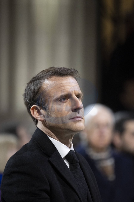 Le président Emmanuel Macron lors de la cérémonie d'État pour l'intronisation de Missak Manouchian et de sa femme Mélinee au Panthéon à Paris le 21 février 2024. © Eliot Blondet / Pool / Bestimage French President Emmanuel Macron during a state ceremony for Missak and Melinee Manouchian's induction into The Pantheon in Paris on February 21, 2024.